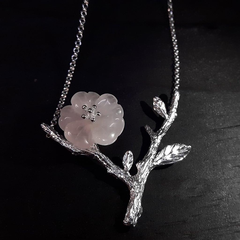 IUHA 【雨の花】ネックレス お花モチーフ ペンダント 天然水晶 S925シルバー 手彫り きれい 金属アレルギーと変色防止 10004iuhaws